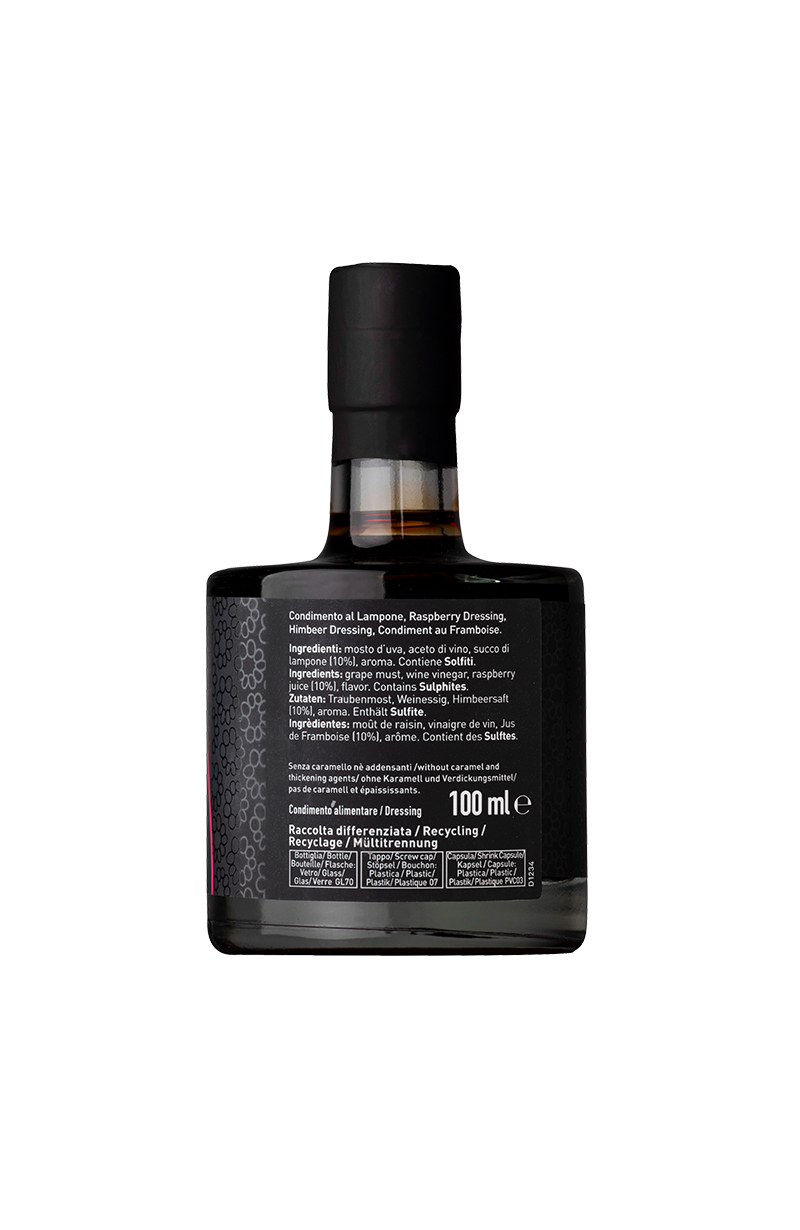 The Raspberry Flavored Balsamic Vinegar is the result of a wonderful combination of balsamic vinegar aged in oak barrels and raspberry.