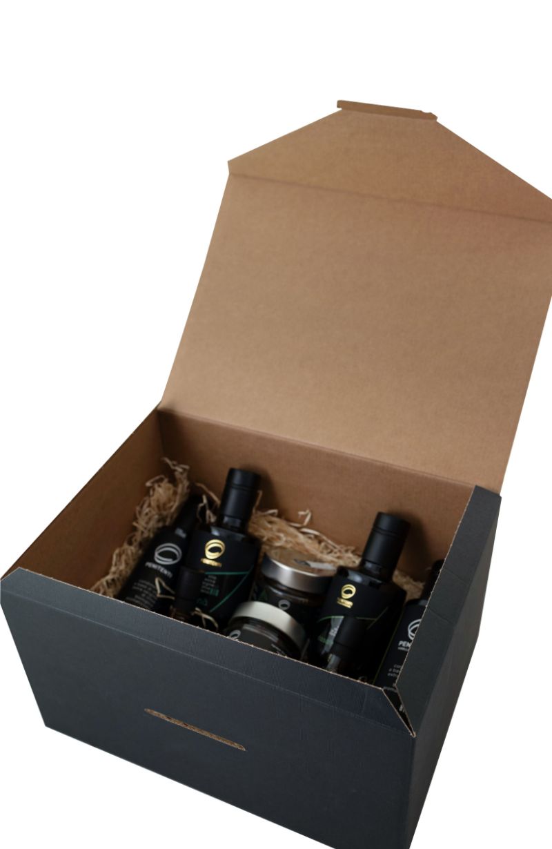 olive, paté di oliva, olio aromatizzato alle erbe, olio aromatizzato al limone, aceto aromatizzato lampone e melograno, Gargnà e Casaliva 0,25